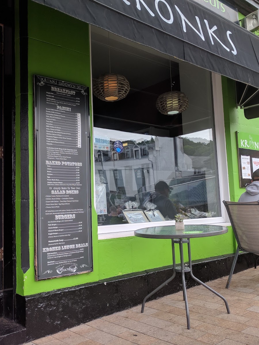 Welcome to Kronks, a charming cafe nestled at 7 Stafford St, Oban PA34 5NJ, where the scenic waterfront complements a diverse menu that excites the palate. The cafe boasts a delightful selection of bagels featuring Cream Cheese and Smoked Salmon, alongside hearty baked potatoes topped with options like Tuna Mayo and Cheese Beans.